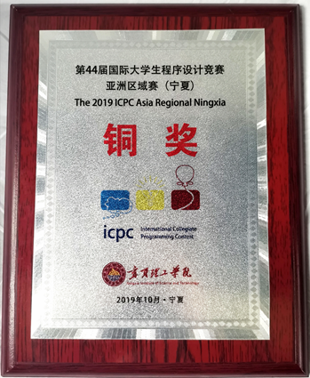 本次ACM/ICPC亚洲区域赛银川站的比赛包括网络赛和现场赛,其中网络赛由来自国内外高校的近千支队伍参赛,首轮选拔出393支队伍参加现场决赛,最终按照现场赛参赛队伍比例的10%、20%、30%颁发金、银、铜奖,我校排名123的好成绩获得铜奖,虽然与银牌排名120擦身而过,但队员不气馁,发奋要继续加油!争取下一次如愿!相信自己!加油孩子们!。