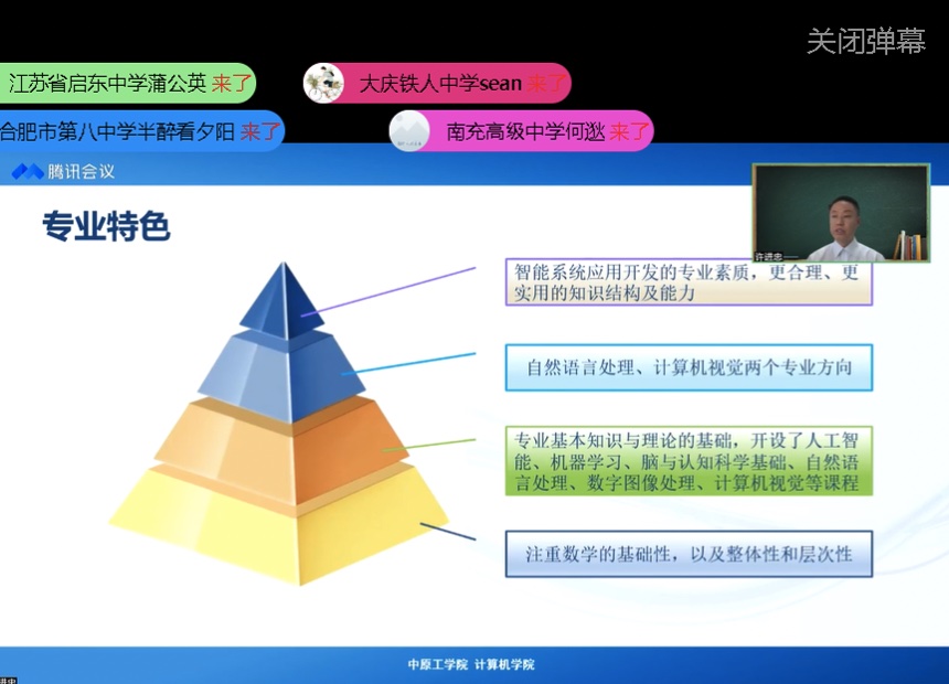 本次招生宣传直播活动分为四个专业专场,计科系主任王海龙以“计算新世界 数字新时代”为主题,网络系副主任张茜以“万物互联 网络为基”为主题、信息安全系副主任单芳芳、骨干教师高丽平以“信息通未来 安全稳天下”为主题,人工智能系副主任许进忠以“人工智能 改变未来”为主题,通过线上直播平台全方位向考生和家长介绍伟德概况、专业特色、办学实力以及招生情况、学生就业、学科竞赛等内容,并与考生和家长进行线上互动,在线解答专业及招生等相关问题。精彩的讲解、积极的交流互动给考生们留下了深刻印象。