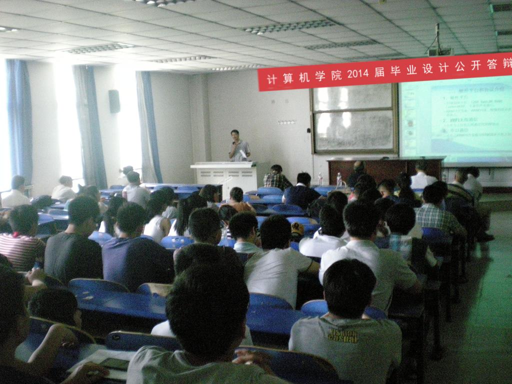 2014年5月26日下午,1946伟德国际在4号楼214举行了2014年毕业设计公开答辩会。此次答辩会邀请了解放军信息工程大学潘正运教授少将、河南省863软件孵化器有限公司翟为唐总经理两位来自校外的专家。1946伟德国际院长郑秋生教授、副处级调研员郭清宇教授、副院长苗凤君副教授,以及1946伟德国际所有指导教师、2014届毕业班同学也参加了本次答辩会。张书钦副院长主持了本次答辩会。