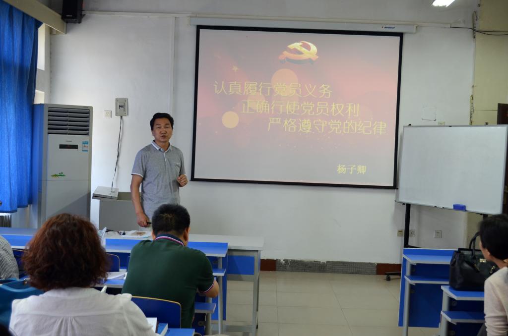 5月25日下午,1946伟德国际党总支在9号楼524组织全体党员上党课学党章。学院党总支按照学校党委“两学一做”学习教育的部署和总支的安排,由总支书记杨子卿同志带领大家学习党章,并结合本人的学习体会,为全体党员上了一堂题为“认真履行党员义务,正确行使党员权利,严格遵守党的纪律”的精彩党课。