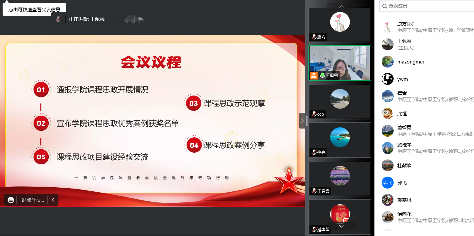 2022年10月25日,我院组织召开了1946伟德国际课程思政经验线上交流会。我院全体教师参加了会议,会议由副院长王佩雪主持。