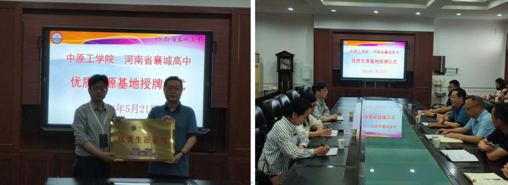 许昌襄城招生组另外走访了市级示范高中——襄城实验高级中学,与襄城实验高中党委书记宋晓鹏、校长单亚辉、副校长蒋双晓、程战桥、纪江浩、校纪工委书记何华等校领导和毕业班班主任代表进行座谈交流,就招生政策、生源基地建设、后续合作等进行了深入的沟通与交流和优质生源基地授牌。
