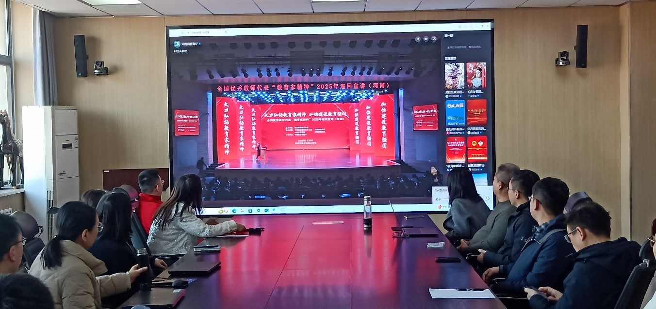 2025年2月26日上午9:00,1946伟德国际在三号组团楼A1116会议室,组织广大教师观看“大力弘扬教育家精神 加快建设教育强国”全国优秀教师代表“教育家精神”2025年巡回宣讲(河南)直播。