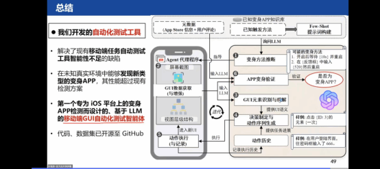 报告中,许教授重点介绍了其团队自主研发的iOS变身APP检测系统ChameleoScan。该系统基于大语言模型构建,具备接近人类水平的自动识别能力,能够有效识别诸如盗版流媒体、博彩及色情内容等伪装类非法APP。同时,他还展示了基于增强少样本学习的敏感信息提取技术,该方法可在低资源条件下高效识别大模型训练数据中的隐私风险,相关成果已发表于NDSS、USENIX Security等国际顶级会议。