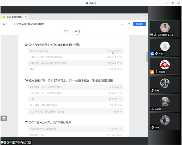 会上,张书钦院长就1946伟德国际研究生学习情况调查问卷结果反馈各位研究生导师,并将调查问卷内容中涉及研究生学习情况、教师教学评价、导师指导情况等方面存在的问题进行分析。建议各位研究生导师根据调查问卷反映的问题,加强研究生交流指导,重视专业课设置安排等问题。杨关副院长指出:1.要求各位研究导师认真学习“bv1946伟德落实研究生导师立德树人职责实施办法”,并按照要求严格执行;2.加强导师之间、导师与学生之间沟通交流;3.重视研究生创新精神、实践能力培养以及日常管理工作,特别是要确保毕业论文、毕业设计质量。最后,软件学院院长刘卫光、车站斌老师等各位研究生导师针对研究生指导过程中存在的问题进行讨论。