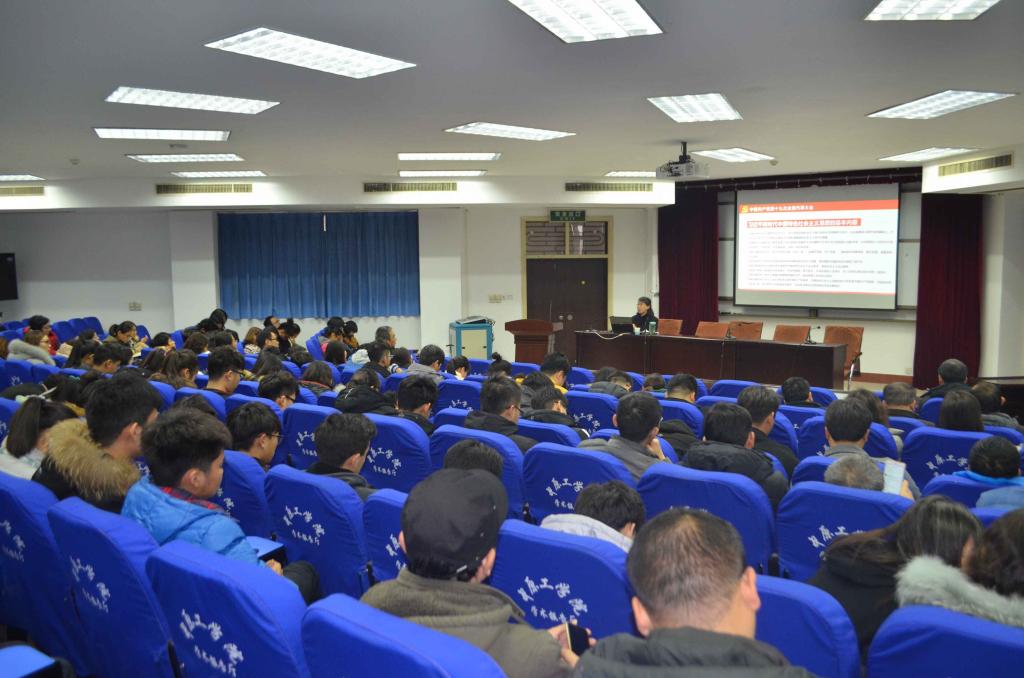 12月12日,1946伟德国际在4号楼311学术报告厅举行党的十九大精神集中宣讲报告会,邀请马克思主义学院虎业勤教授来学院作专题辅导报告。辅导报告会由学院张启峰书记主持,学院200多名师生聆听。