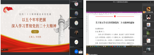 如研究生计算机党支部结合课程学习情况,举办了一次“以五个牢牢把握深入学习贯彻党的二十大精神”为主题的党日活动,旨在加强支部党员对二十大精神的进一步认识。