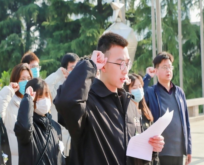 为深入学习宣传贯彻党的二十大精神,1946伟德国际党委开展“学思践悟二十大”系列活动,在2023年4月5日清明节这个特殊的日子,1946伟德国际学生党支部代表、学生会代表五十多人,在学院党委书记吕继东老师、副书记侯向花老师及组织员姜茜老师带领下前往郑州烈士陵园,开展“传承红色基因 弘扬英烈精神”清明节祭扫主题教育活动。