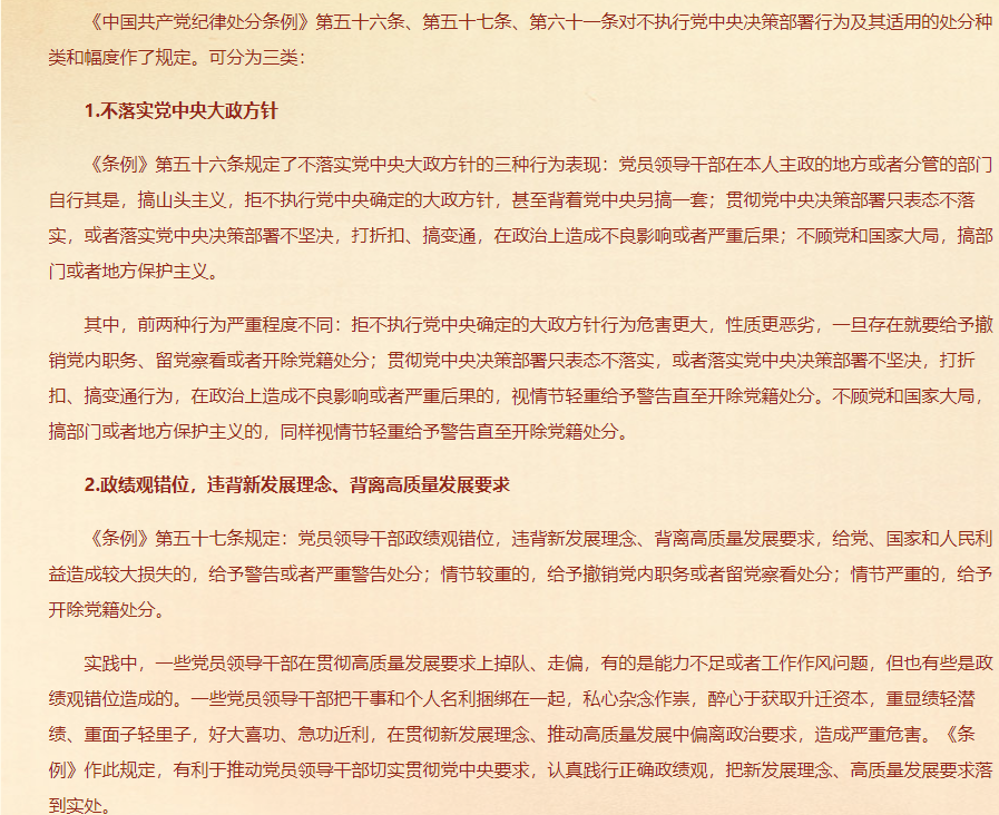 哪些行为属于不执行党中央决策部署?相关的处分规定有哪些?