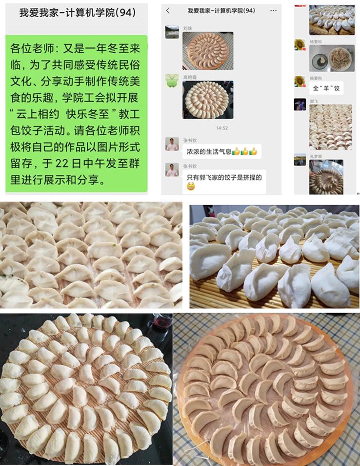 冬至是中国重要的民俗节日之一,俗话说:“冬至不端饺子碗,冻掉耳朵没人管。”冬至吃饺子是北方人的传统食俗。为了共同感受传统民俗文化、分享动手制作传统美食的乐趣,1946伟德国际分工会于12月22日开展了“云上相约,快乐冬至”教工包饺子活动。