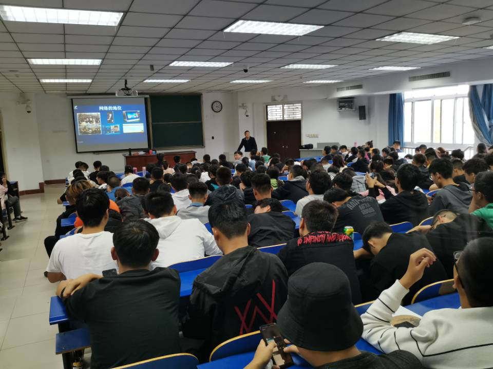 18、19级专业宣讲分为两场,信息安全专业宣讲与网络工程专业宣讲。首先由信息安全系主任刘伎昭老师从信息安全专业的就业方向、发展前景等方面介绍了信息安全专业。随后,来自向心力通信技术股份有限公司的研究大数据与信息安全高级讲师赵利格老师,结合自己的亲身经历,强调了在大数据时代信息安全的重要性。后半场网络工程专业宣讲,由来自向心力通信技术股份有限公司的研究云计算与数通方向高级讲师、网络工程师郭俊杰老师进行宣讲,首先介绍了网络的历史、概念、重要地位以及未来发展前景,接着向同学们展示了网络专业广阔的就业前景,并为同学们的未来职业规划进行了分析,同时强调了同学们要将基础学科学牢学扎实,最后向我们展示了不同网络专业毕业生的薪资待遇,激励我们在网络工程行业取得自己的建树。通过两位老师的讲话,让我们更加了解我们的专业未来前景和未来努力方向。最后王淼副书记为我们总结了我们接下来一段时间的任务:四六级备考、学习学生手册、准备入党申请以及准备心理素质拓展运动会等事宜。并告诫我们任务繁多、形势严峻,但我们仍应以高昂的斗志、不懈的毅力来处理好一项又一项的挑战,不断的完善自己,将自己培养成一个德智体美劳健全的新时代大学生。