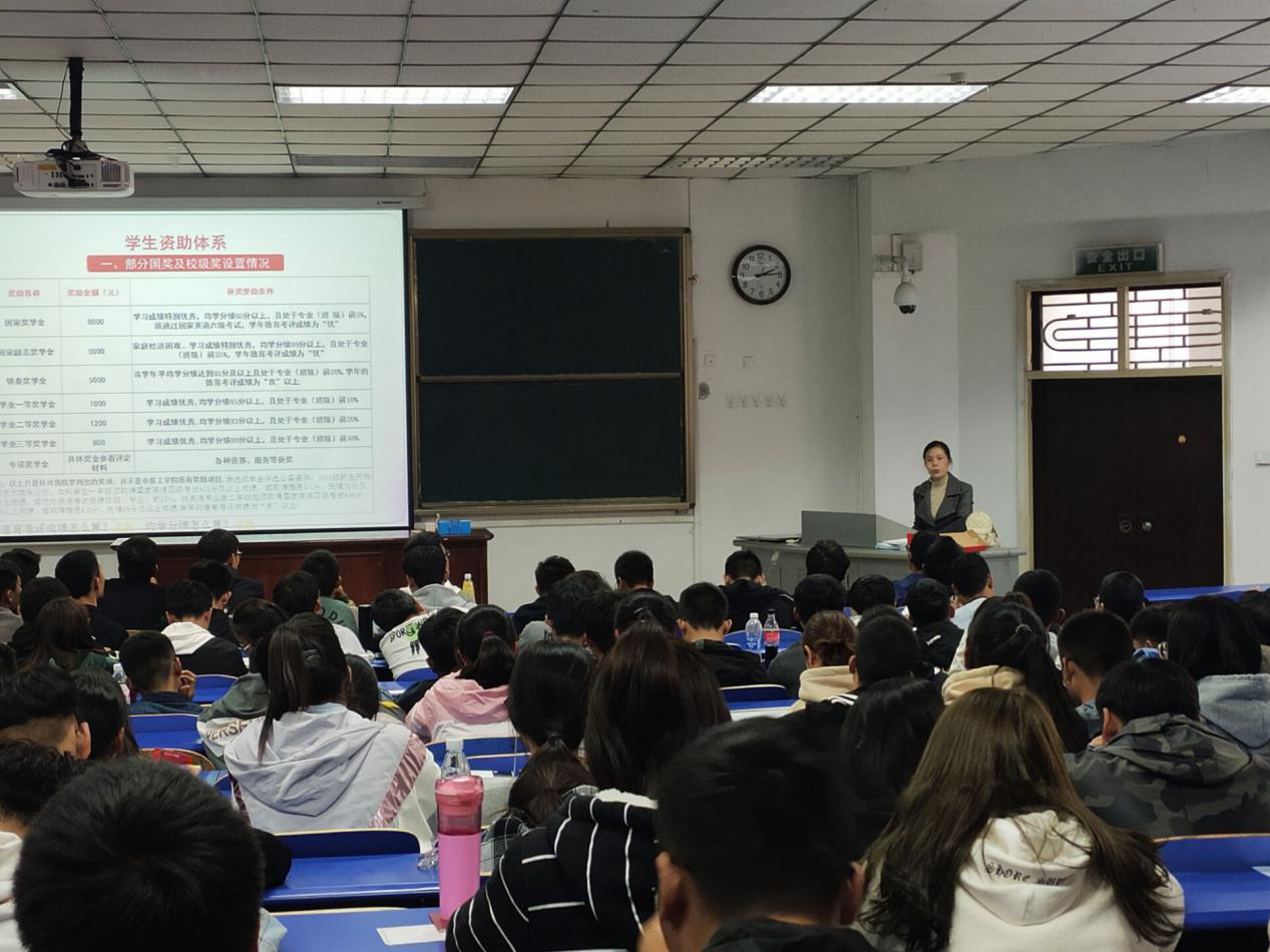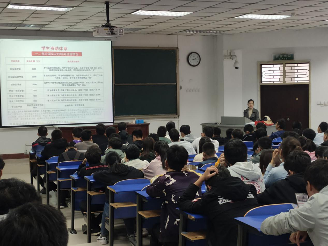 首先,孙奇峰辅导员为同学们介绍了学生资助体系,包括国家奖学金,助学金及校级奖学金设置情况,随后详细讲解了各种奖学金的获奖受励条件和助学岗的相关情况。此次会议,为众多学生讲明了获取资助的条件,更加方便了同学们申请资助,加深了同学们对资助体系的了解。
