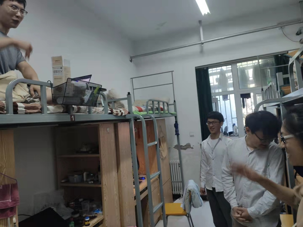 我院目前留校研究生还有近二十人,侯老师带着精心挑选的月饼、香蕉、橘子等礼物,到研究生宿舍进行了走访,还给伤病号王菻同学送去了牛奶等慰问品。侯老师代表学院,向大家致以节日的问候和诚挚的祝福,详细地了解大家的学习生活情况,赞扬大家暑假期间,在校经暴雨、抗疫情,服从学校封闭管理要求,积极参加校内志愿服务,克服生活上的诸多困难坚持学习。希望同学们坚定理想信念,听从党和政府及上级要求,潜心学专业做科研,做德才兼备的高素质人才。