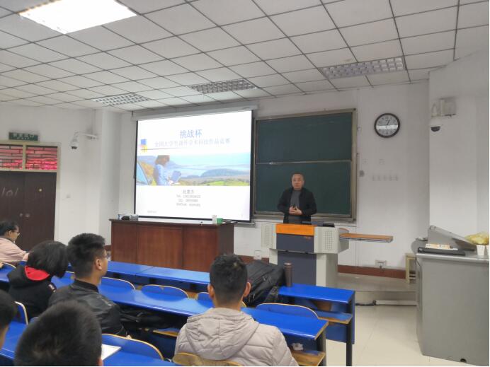 来自科技创新工作室的胡鹏飞主持了本次宣讲,介绍了挑战杯大赛及其参赛须知。“挑战杯”全国大学生课外学术科技作品竞赛是由共青团中央、中国科协、教育部、全国学联和地方政府共同主办,国内著名大学、新闻媒体联合发起的一项具有导向性、示范性和群众性的全国竞赛活动,以“崇尚科学、追求真知、勤奋学习、锐意创新、迎接挑战”为宗旨,被誉为当代大学生科技创新的“奥林匹克”盛会。赵慧杰老师以一个有趣的小游戏开头,从如何选题、如何组队、项目的选择、成功的因素等为我们详细地介绍了挑战杯竞赛。来自创新训练营的徐畅为同学们介绍了我校的创新训练营。