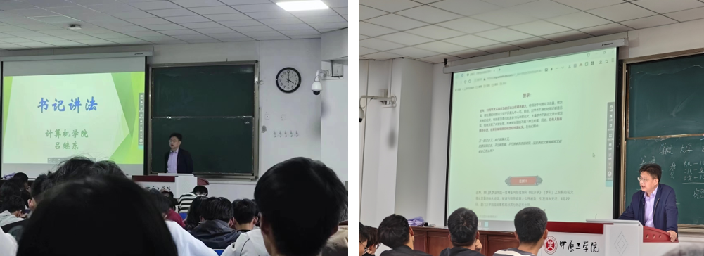 吕书记的讲座,通过以案释法形式,向同学们讲解了大学生违法常见类型、诱发原因和预防方法,提醒全体新生注意人身安全、财产安全、网络安全等多方面安全,防范电信诈骗,不断提高防范意识,增强法治观念。他劝诫学生要以正确的世界观、人生观、价值观面对大学生活,提高自我管控能力,严格遵守学校学生各项规章制度,保持清醒头脑,不触碰纪律底线。另外也要做好个人规划,积极参与各类团学实践,努力提高自身综合素质,做到德智体美劳全面发展,争做新时代德法兼修、德才兼备的高素质综合性人才。
