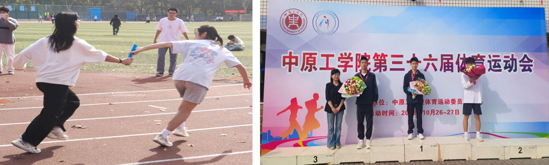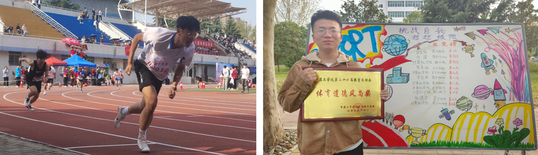 在比赛项目上,我院运动员在多个项目中取得优异成绩,其中梁佳福同学在男子跳高比赛中荣获第一名的出彩成绩,刘圆同学在男子1500米中获得第四名的成绩,张德华同学在男子200米中获得第六名的成绩,贺易涵同学在女子400米中获得第七名的成绩,宋佳辉同学在男子400米中获得第八名的成绩。我院在集体项目中也有斩获,跳大绳、男子4X400接力、男子拔河均获得第四名的成绩,女子4X100接力获得第七名的成绩,男子4X100、女子拔河均获得第八名的成绩。我院以优异的赛事组织服务、特色亮点突出,赢得本届运动会的体育道德风尚奖。