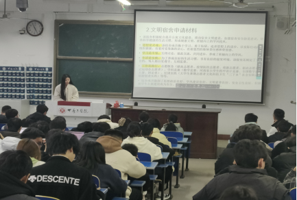 张钰明从宿舍文化功能、常见的宿舍人际关系及解决措施、宿舍安全教育等方面进行具体分享。她指出在校生要重视宿舍的舆论导向功能、规范约束功能、情感平衡功能以及品质塑造功能,和宿舍成员一起营造团结奋进的宿舍氛围,形成积极向上的宿舍文化,共同成长。