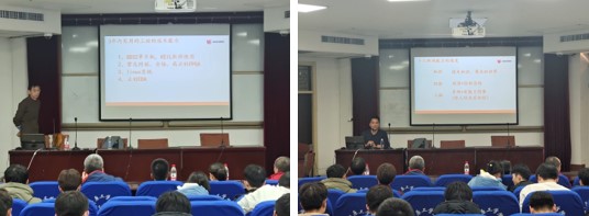 在简单开场介绍后,华成工控技术负责人张树祥张总首先开讲。他先就华成工控企业发展历程、主营业务进行讲解,接着围绕华成工控的工程师团队、工业机器人行业对1946伟德国际各专业学生未来职业需求和发展方向提出可行性建议。之后,华成工控人力资源负责人秦总做关于职业规划讲解,从企业用人招聘角度,分享了计算机专业学生所要具备的知识、经验、人脉等个人职场能力维度。期间,企业代表也同参会同学就“中国智造”与互联网就业选择等问题进行了深入交流与探讨。