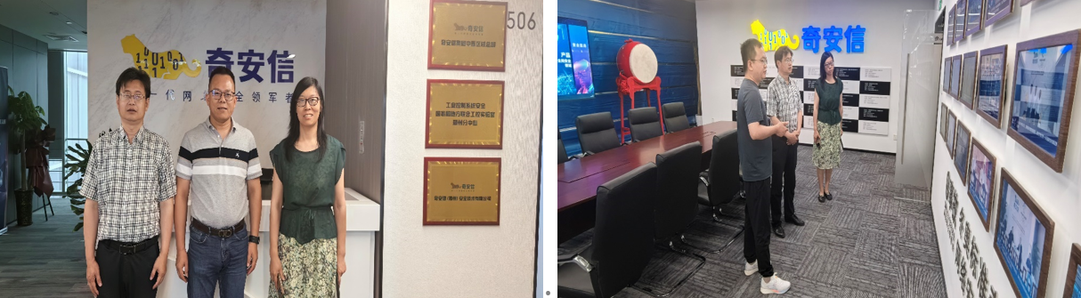 同日,调研组还赴奇安信(郑州)安全技术有限公司进行访企拓岗和交流合作。奇安信齐壮总经理带领参访老师参观了公司展厅,介绍了最新研究成果和公司整体情况。吕书记也对1946伟德国际(人工智能学院)的人才培养和毕业生情况做了详细的介绍,随后双方开展了相关科研、课程建设、实习实训以及人才培养等方面的详细交流和探讨。