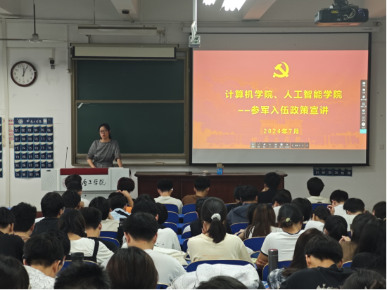戎装在身,无悔青春。优质的国防力量是祖国强大的表现。通过本次宣讲会,同学们对征兵入伍政策有了深入的了解,同时激发了他们对军旅生活的向往,点燃了他们参军报国的热情,期待计算机、人工智能学子牢记使命担当,贡献青春力量,积极参与应征!