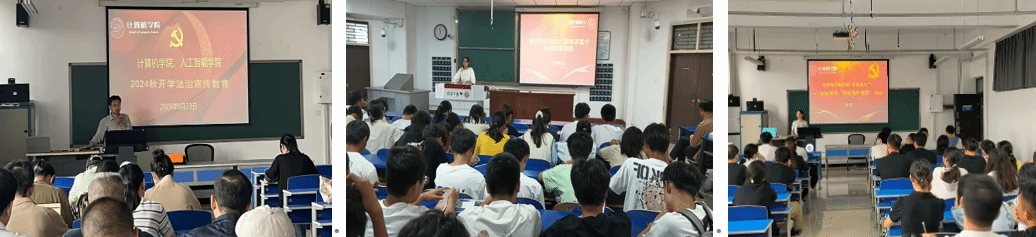 学院党委书记吕继东在学院大会上,对宣传贯彻习近平法治思想进行宣导,围绕师德师风、教育法等开展教育规章制度教育,在我院形成浓厚的法治宣传教育氛围。学院党委副书记侯向花老师在2024级新生入学教育会上带领全体新生进行普法宣传教育,党委组织员姜茜老师面向四个学生党支部的学生党员进行“学宪法讲宪法”法治宣讲,学工办副主任于倩静老师、学院团委副书记王腾老师带领1946伟德国际团学骨干学习法治精神,人工智能学院辅导员姜茜老师进行“反电信诈骗”法治宣讲,冯丽轩老师带领人工智能学院数科专业学生开展普法宣传教育。另外学院还组织学生参加国家网络安全知识答题、民族宗教征文演讲,组织学生参加“2024网络安全百校行”优秀网络安全微视频征集和评选等活动,对广大学生、党团员进行全方位的法治宣传教育。学院“计忆中工”微信公众号也进行了推文宣传。