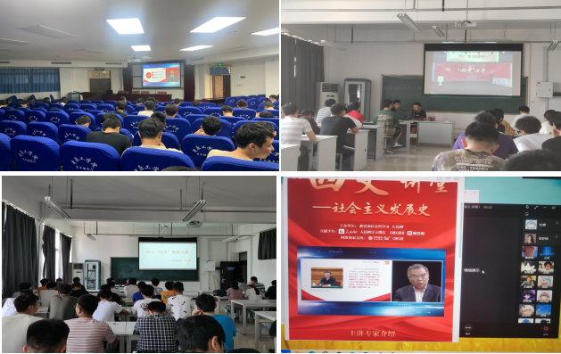 第一讲“党史”大课,北京师范大学马克思主义学院赵朝峰教授、武汉大学马克思主义学院卢勇副教授、南京航空航天大学马克思主义学院何畏教授分别以“马克思主义与中国共产党的百年辉煌”“中国共产党与中华民族的伟大复兴”“中国共产党革命精神形成与传承的百年历程”为题开讲百年党史发展历程,带领同学们回顾了中国人民从“站起来”到“富起来”到“强起来”的历史进程。用党的实践探索和历史经验深刻阐述了中国共产党为中国人民、中华民族和人类文明进步事业作出的伟大历史贡献,教育引导大学生在以党史学习教育为重点的“四史”教育中真正做到“学史明理、学史增信、学史崇德、学史力行”,坚定对马克思主义的信仰、对中国特色社会主义的信念、对中华民族伟大复兴中国梦的信心,激励广大青年大学生从百年党史中汲取前行力量,以昂扬姿态为全面建设社会主义现代化国家努力奋斗。