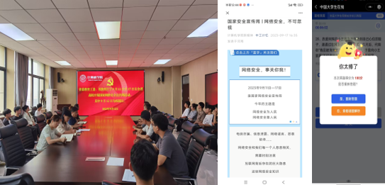 学院党委书记吕继东老师带领1946伟德国际学生干部骨干,学习国家网络安全宣传周文件要求,以生动案例引导学生树立正确的网络安全观,提升网络安全素养。在9月11日至17日的宣传周里,我院各班级、党、团支部围绕国家网络安全宣传周主题,通过主题班会、主题党(团)日、网络安全知识答题、反网络电信诈骗培训等活动,学院“中工计忆”微信公众号也进行了推文宣传,对广大学生、党团员进行全方位的网络安全教育。
