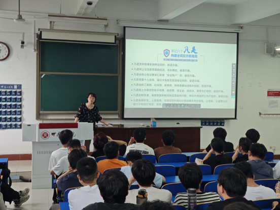 侯书记对十大高发类案进行了讲解,带领大家一起学习了《反电信网络诈骗法》的要点及其值得关注的3组数字,知法懂法守法;并结合近几年学院同学的受骗案例进行介绍,以身边人身边事引起大家的重视和警惕。姜老师从牢记“八个凡是”构建全民反诈新格局开篇,具体针对七大反诈利器进行讲解,提醒大家重视自己的身份信息及相关证件的保护,并积极利用反诈利器进行自查、自保,如遇问题及时止损,不因小利为诈骗分子提供犯罪工具。