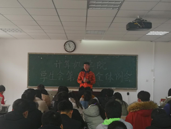 本次大会由学生会主席邢正路主持,首先表扬了各部门近期表现较优秀的成员,并为他们颁发荣誉证书,之后合影留念。接着,外联部、心理部两部长发言,就近期将要开展的“内部联谊”和“冬至包饺子大会”作简要介绍。学生会副书记薛豪及学生会副主席李海如分别就近期学习相关问题作表述,期望学生会成员在做好自身职务工作的同时更要搞好学习,提醒学生会成员达到学业警示将会被退会,督促全体成员努力学习,争做优秀干部。大会最后,主席邢正路做总结。