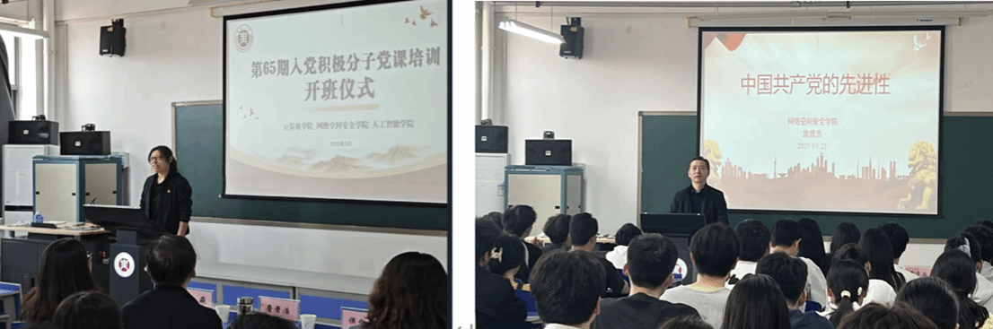 2025年3月25日下午,1946伟德国际、网络空间安全学院与人工智能学院联合举办的第65期入党积极分子党课培训班开班仪式在三号组团A908教室隆重举行。党委组织部副部长、机关党委副书记王淼,网络空间安全学院党总支书记詹晋浩,1946伟德国际党委副书记侯向花,网络空间安全学院党总支副书记邢颖,人工智能学院直属党支部副书记张志鹏出席活动,相关各学院辅导员及全体学员共计150余人参加活动。开班仪式由人工智能学院直属党支部副书记张志鹏主持。