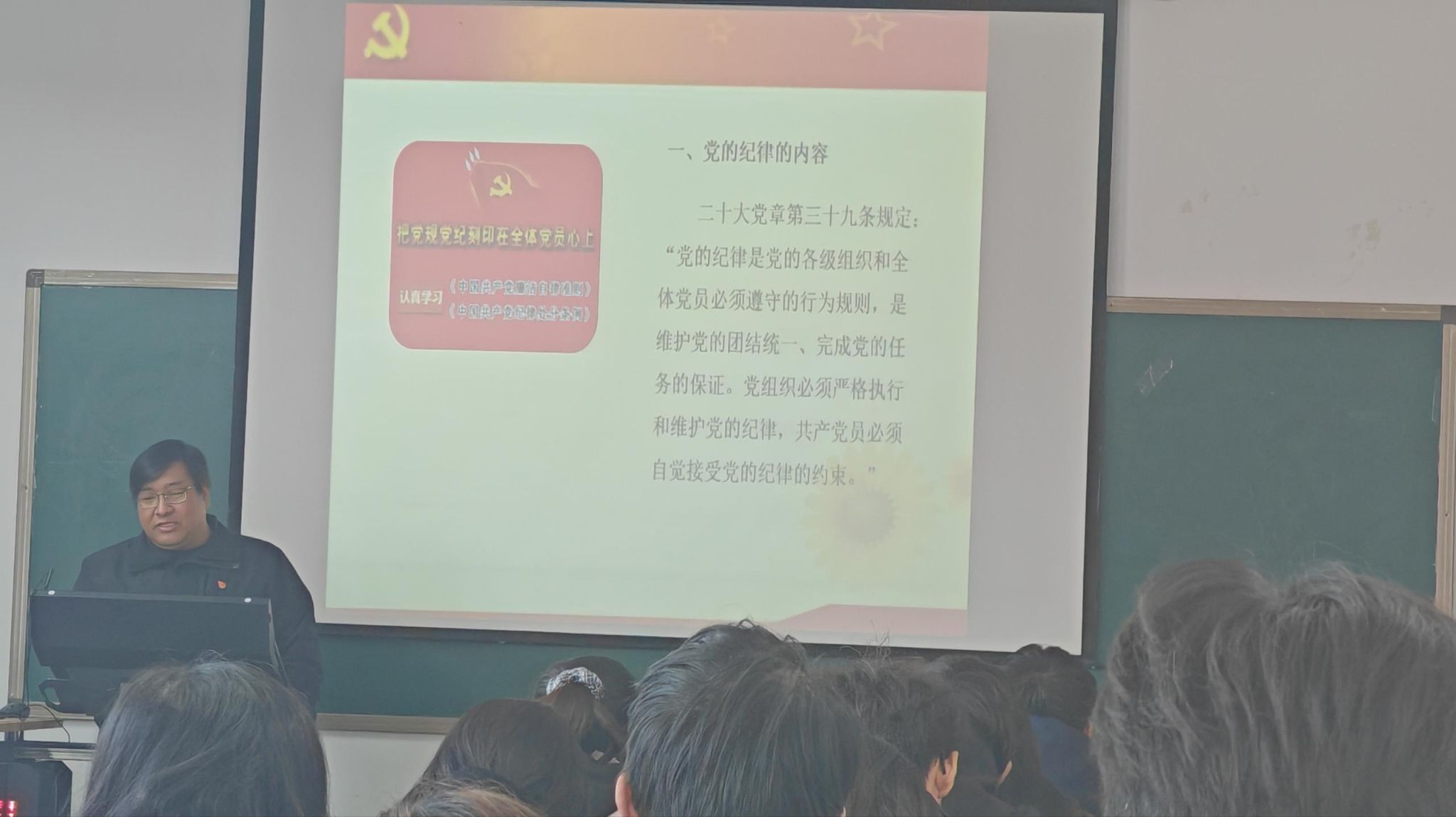 在党的纪律建设方面,张书记重点解读了政治纪律、组织纪律、廉洁纪律、群众纪律、工作纪律和生活纪律等“六大纪律”的内涵要求。随后,张书记结合新时代全面从严治党的实践成效,深入分析了形式主义、官僚主义、享乐主义和奢靡之风的危害,指出作风建设永远在路上,必须持之以恒落实中央八项规定精神,大力弘扬党的光荣传统和优良作风。