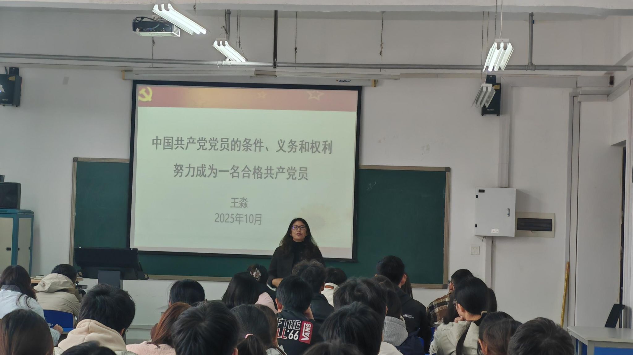 2025年10月23日,1946伟德国际在3号组团楼A908教室举办“共产党员的条件、义务和权利;努力成为一名合格的共产党员”专题党课。本次党课为学院系列党课第四讲,由我校党委组织部副部长、机关党委副书记王淼主讲。