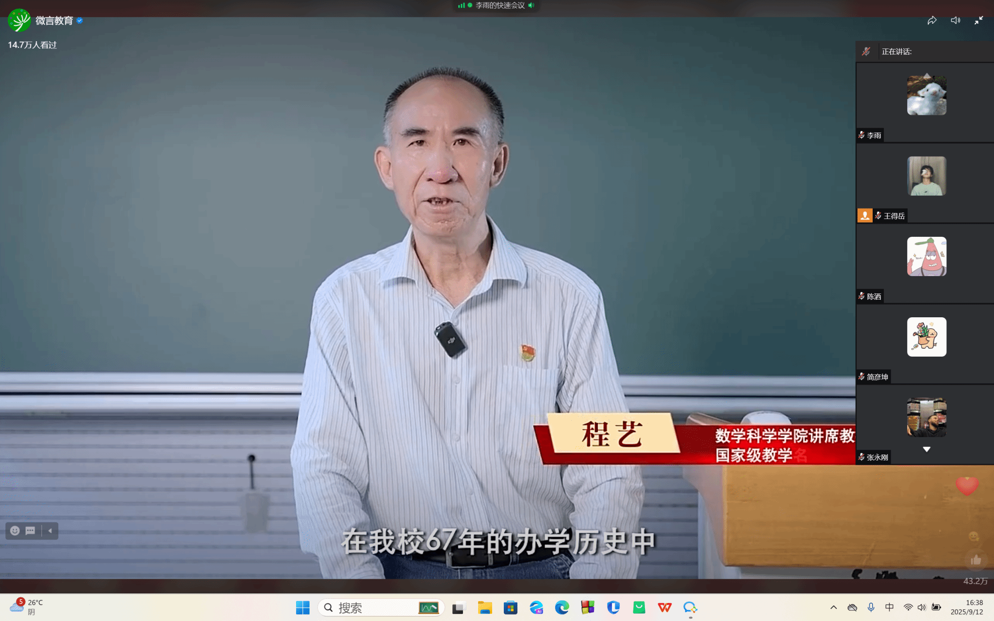 2025年9月12日16:00,1946伟德国际党委组织全体学生党员线上集中收看2025年高校党组织示范微党课第1讲《深刻把握教育三大属性·谱写教育强国时代新篇》。
