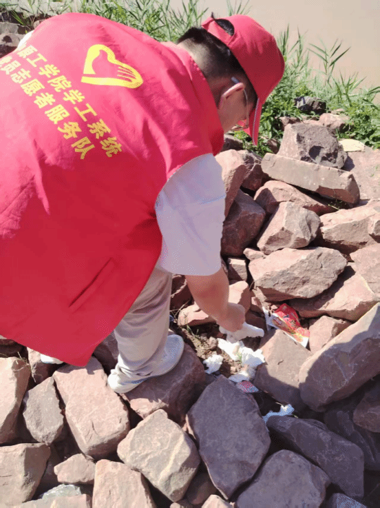 实践团队在花园口公园进行环境清洁工作