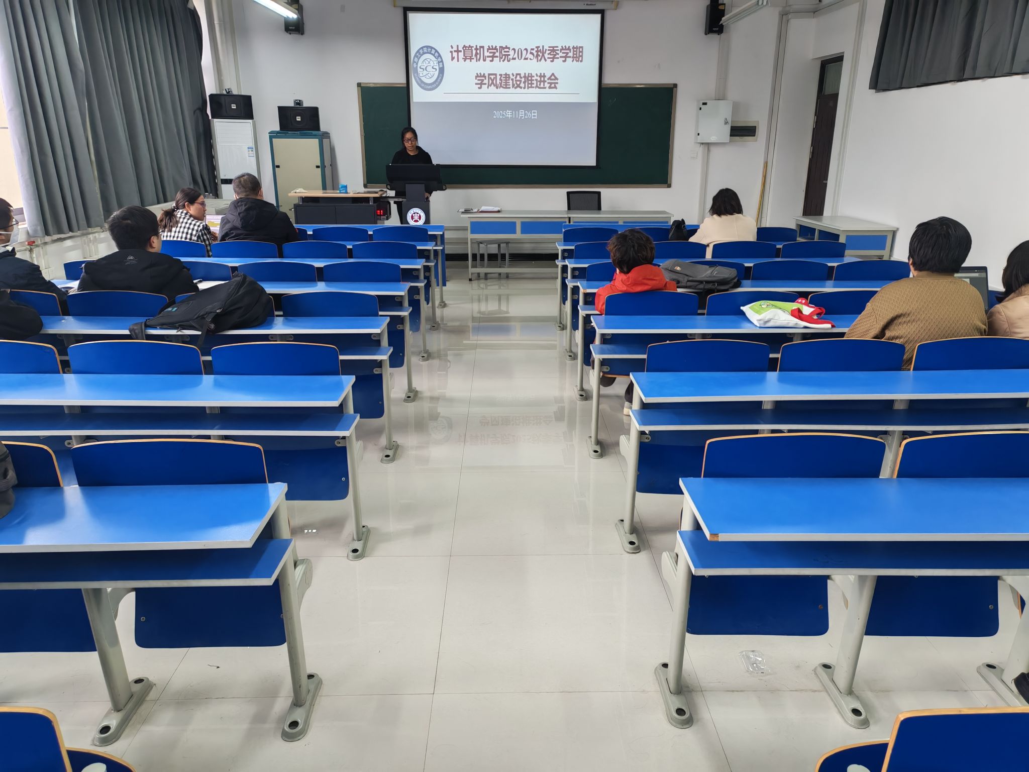 2025年11月26日,1946伟德国际在三号组团楼A908教室召开2025年秋季学期学风建设推进会,学院党政领导、各年级辅导员及全体班主任参加会议。会议由院党委副书记侯向花主持。